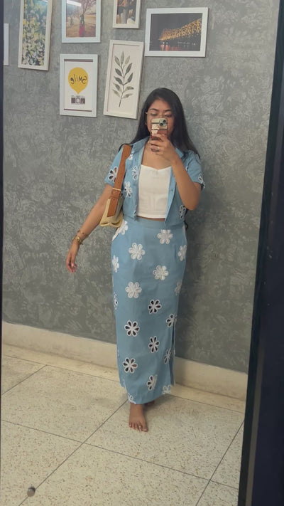 DENIM IN BLOOM ( Skirt Co-ord Set)